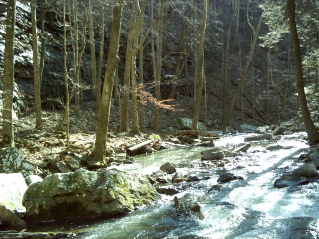 Rock cliff along trail to base of natural bridge